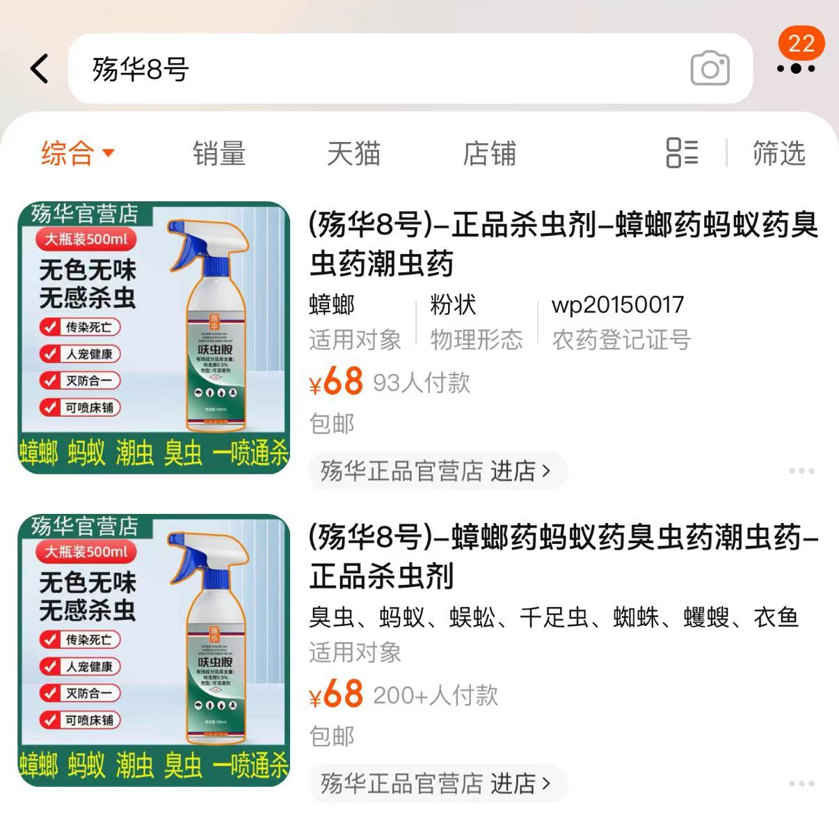 你们说的这个 殇华8号 能买的到吗?一到天热潮虫四处乱跑,特别可恶,用了其他的只能暂时解决,不能彻底消灭